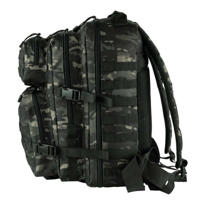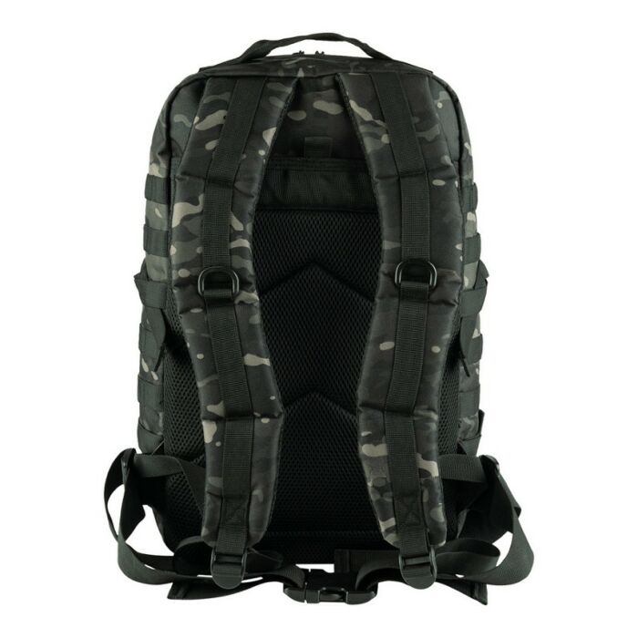 De rugzak bestaat uit 4 delen die allen afsluitbaar zijn met een rits. Deze molle rugzak is gemaakt van 100% nylon en de totale inhoud van is 45 liter.
