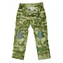 Voorzien van veel zakken over de gehele broek en pads ter bescherming van de knieën.