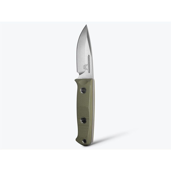 De Benchmade Outdoormes Mini Bushcrafter OD, een bushcraftmes in hart en nieren, betrouwbaar en uitgevoerd met een Full-tang constructie voor langdurige avonturen.