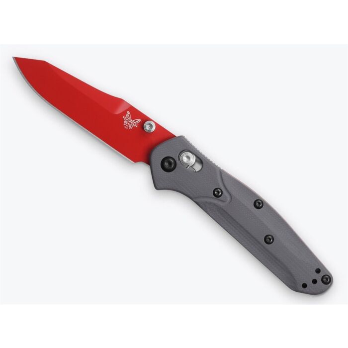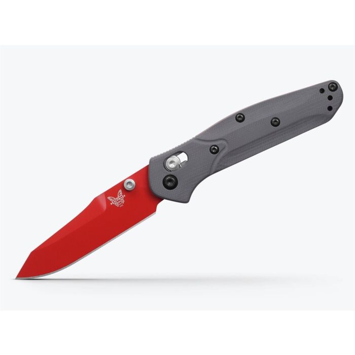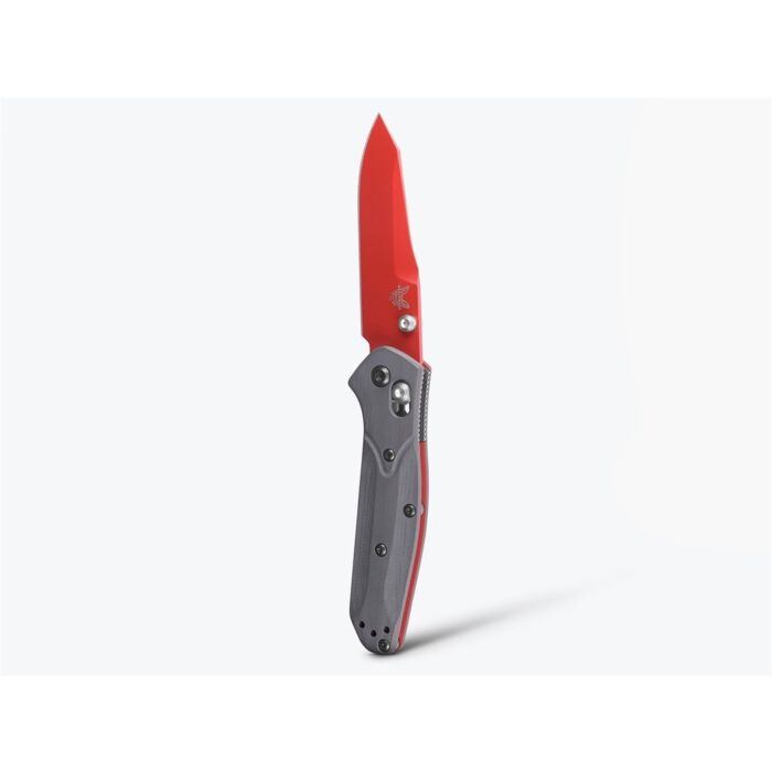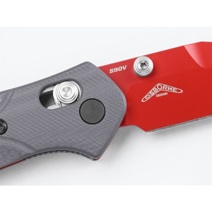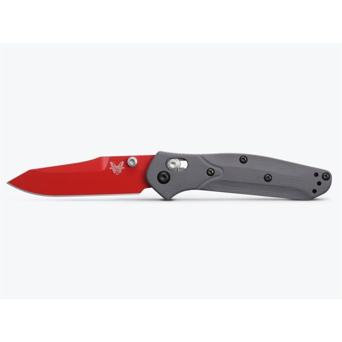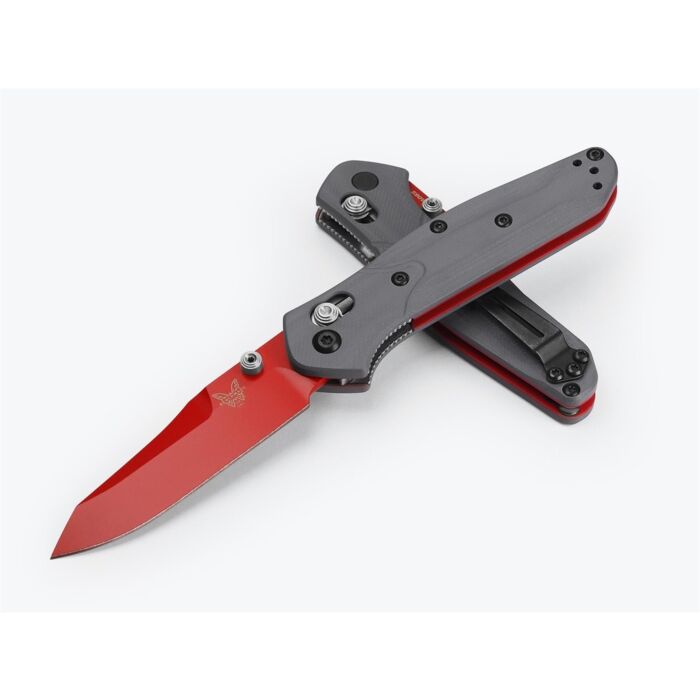 Benchmade Zakmes Mini Osborne is de langverwachte kleine broer van de alom bekende Osborne 940 en een ideaal EDC mesje. Het reverse tanto lemmet is gemaakt van CPM-S90V staal, een kwalitatief hoogwaardige staalsoort die bekend staat om zijn uitstekende scherptebehoud. Het lemmet is afgewerkt met een rode Ceracoat. Door zijn Ceracoat coating krijgt het lemmet niet alleen een unieke uitstraling, maar is deze ook gemakkelijk te zien wanneer deze in een bosrijke omgeving wordt gebruikt. De Mini Osborne heeft een zogenaamde AXIS® vergrendeling, dit is een handmatig schuif-mechanisme welke het lemmet vergrendelt. Het heft is gemaakt van getextureerd G10. Dit is een composiet materiaal met uitstekende slijtvastheid, een stevige grip (zelfs in natte omstandigheden) en een subtiele maar luxe uitstraling. Het mes is uitgevoerd met een omkeerbare draagclip en duimstudsKenmerken: