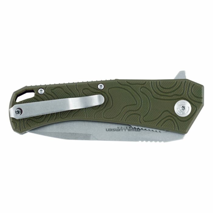Olive Drape Green handgrepen en RVS stonewashed lemmet.