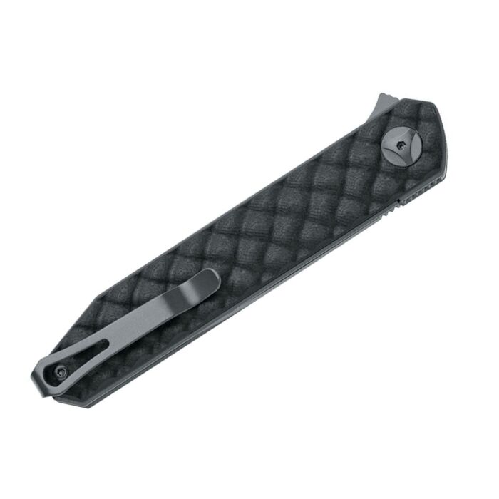 Black Fox Zakmes Reloaded is een elegant Italiaans zakmes met een aantrekkelijk lijnenspel. Het lemmet is uitgerust met een flipper zodat het mes gemakkelijk en snel één handig geopend kan worden, vervolgens houdt de linerlock het mes stevig in geopende stand. Het gehele mes is afgewerkt in een titanium coating dit verbeterd de snijeigenschappen van het mes en maakt het staal meer corrosie bestendig. Verder geeft dit een satijnen stonewash textuur en zorgt de coating voor een moderne gematteerde look. Het heft is gemaakt van in een ruitpatroon gefreesd G10, dit is een composiet materiaal met uitstekende slijtvastheid, een stevige grip (zelfs in natte omstandigheden) en een subtiele maar luxe uitstraling. Uitgevoerd met een deep-pocket draagclip, kortom een zeer stijlvolle keuze voor dagelijks dragen.Kenmerken: