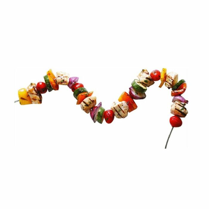 Firewire flexibele barbeque vleespen, een makkelijk mee te nemen set van twee flexibele RVS satépennen met aan één zijde een lus en aan de andere kant een korte metalen pin. Je rijgt eenvoudig vlees, vis of groente aan deze 65 cm lange vleespen. Daarna kan je deze in de gewenste vorm op de BBQ of grill leggen.