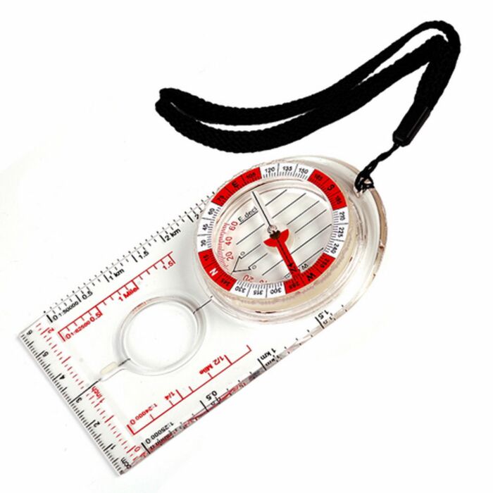 Ultra licht kompas, voorzien van vergrootglas en nekkoord. Gemaakt van 100% kunststof. Het kompas heeft verschillende waarden aan de zijkant om eenvoudig afstanden hemelsbreed te berekenen. U kunt het koord ook gebruiken om route afstanden te schatten. Leg het koord over de route, trek het daarna recht en meet dat stuk van het koord op. Leg deze waarde naast de schaalverdeling op de kaart en u heeft uw afstand geschat!