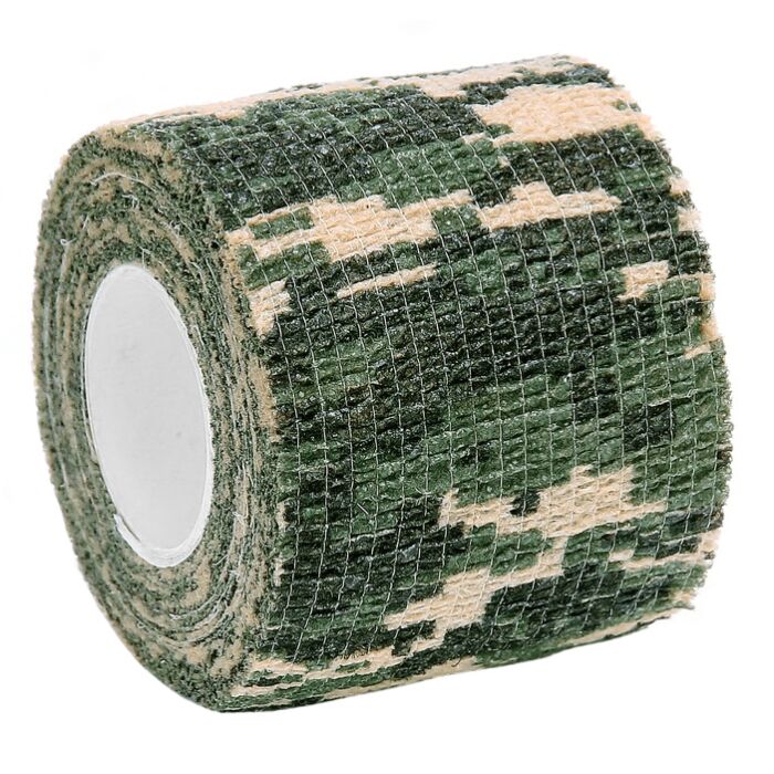 Camouflage stretch bandage voor het camoufleren van artikelen, zoals bijvoorbeeld een wapen of een zaklamp.