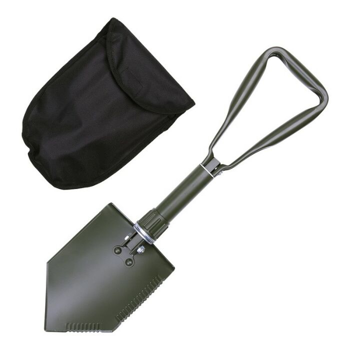 Fosco Trifold Pioniersschep met hoes legergroen van 100% metaal inclusief nylon hoes.