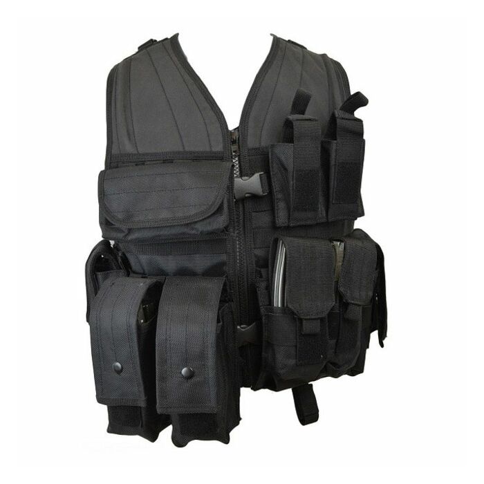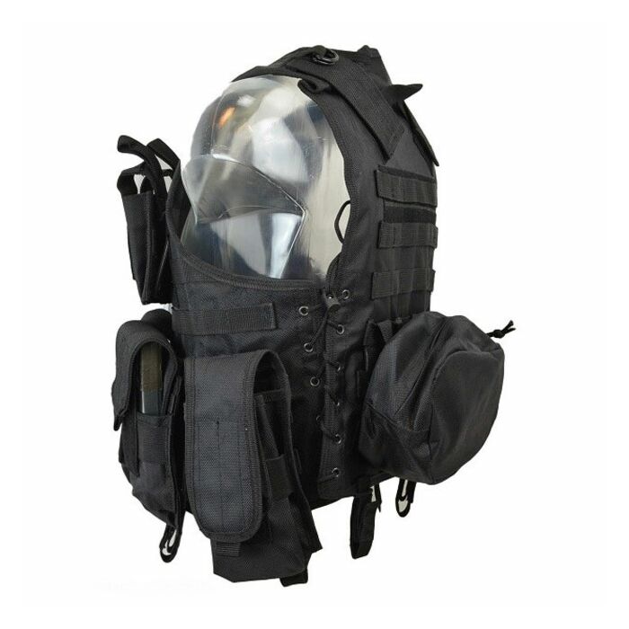 Tevens voorzien van bandjes aan de onderzijde zodat het vest vastgemaakt kan worden aan de koppel.