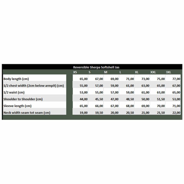 - Materiaal: Softshell 100% nylon Sherpa 100% polyester