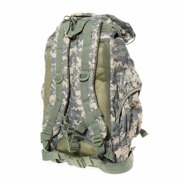 De rugtas is voorzien van comfortabele mesh rugpadding en mesh padded draagstraps. Tevens voorzien van geïntegreerde regenhoes en nog twee zijvakken met rits.