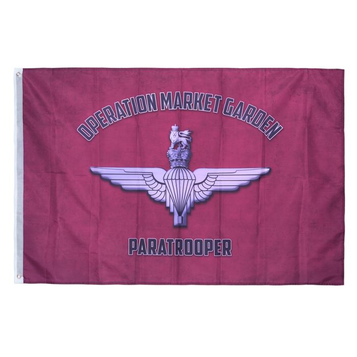 Vlag gemaakt van 100% polyester en voorzien van bevestigingsringen.