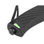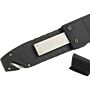 Zwart gecoat drop point lemmet met een speciaal gedeelte op de rugzijde voor het gebruik van de firesteel.
