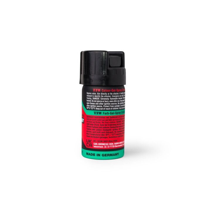 De KH Security zelfverdediging spray, Weer aanvallers af met deze gekleurde spray kleurengelspray. Wanneer de spray gebruikt wordt zal een krachtige stroom aan rode kleurstof uit sprayen. Dit veroorzaakt ongemak en afleiding zodat u de situatie kunt ontvluchten. De rode kleurstof is niet gemakkelijk te verwijderen en blijft enkele dagen op de huid en kleding van een aanvaller. Een goed en legaal alternatief voor illegale pepperspray.