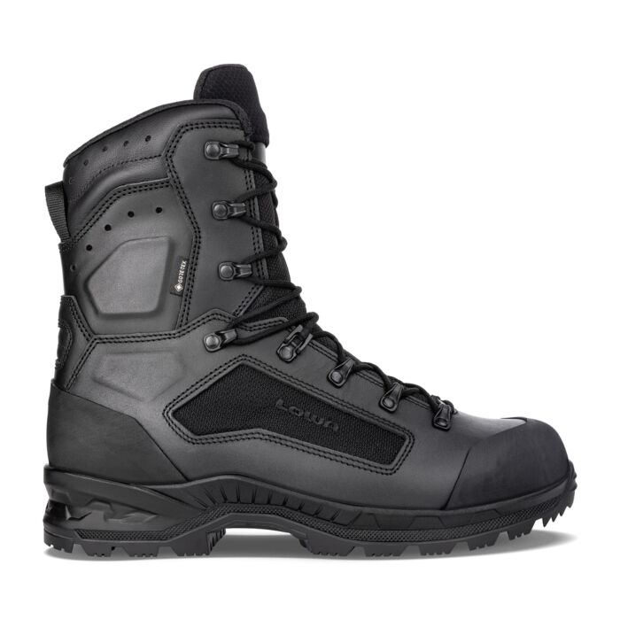 De Lowa Breacher GTX Hi Black is onderdeel van een compleet nieuwe generatie combat boots. Het hoge bovenwerk van de laars biedt een ideale combinatie van stabiliteit en bewegingsvrijheid. De comfortabele PU-tussenzool en geïntegreerde voetondersteuning voor extra lange marsen, maakt het gecertificeerde enkelbeschermingssysteem met PORON®-technologie deze laars tot het ideale uitrustingsstuk voor soldaten en particuliere militaire aannemers. Voor het bovenwerk wordt een combinatie van zeer slijtvast, ademend CORDURA®-materiaal en glad leer gebruikt. Dankzij de LOWA® RAYFLECT®-technologie reflecteert het gladde leer bovendien zonlicht. Het enkelhoge bovenwerk van de laars biedt een ideale combinatie van stabiliteit en bewegingsvrijheid.