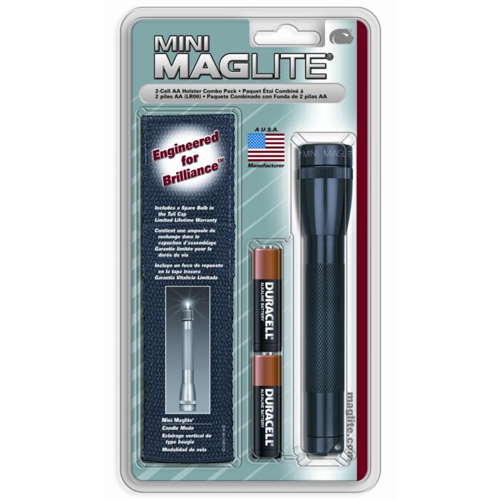 De meest verkochte kleine Maglite is deze, de MiniAA. Een topkwaliteit zaklamp die niet onderdoet voor de groot-formaat staaflampen. De Maglite MiniAA is 14,6 cm lang en weegt nog geen 110 gram. Op het breedste punt is de lamp bijna 2 cm breed. Set inclusief batterijen en opberghoes voor aan de riem.