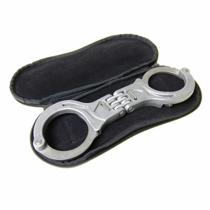 Het voordeel van deze koppeltas is dat de handboeien plat opgeborgen zijn en daardoor niet teveel uitsteken.