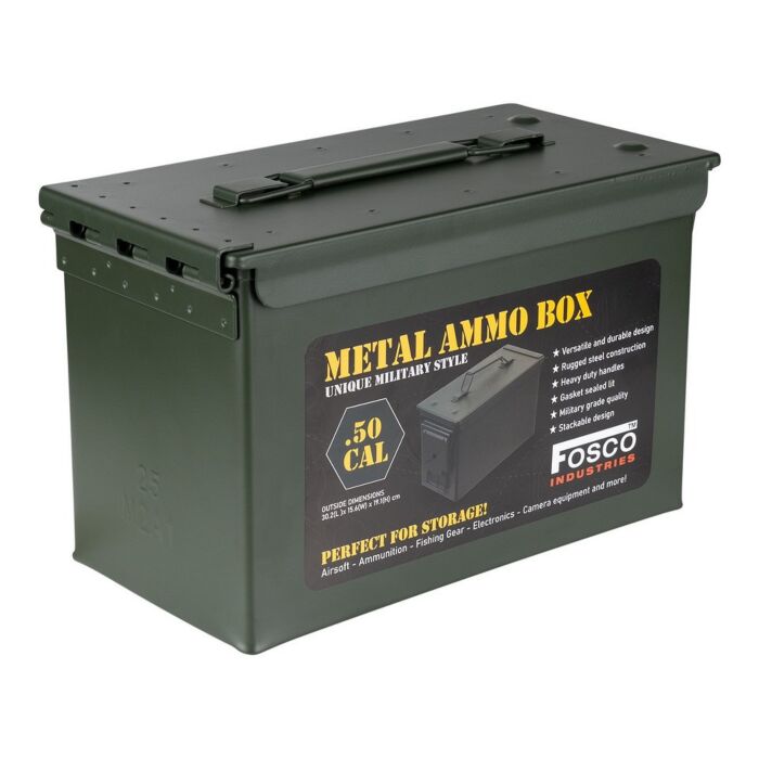 Metalen munitiekist 50 Cal. NIEUW. Perfect voor het opbergen van airsoft materiaal, munitie, hengelsportartikelen, elektronica, camera-uitrusting en meer. Kenmerken: