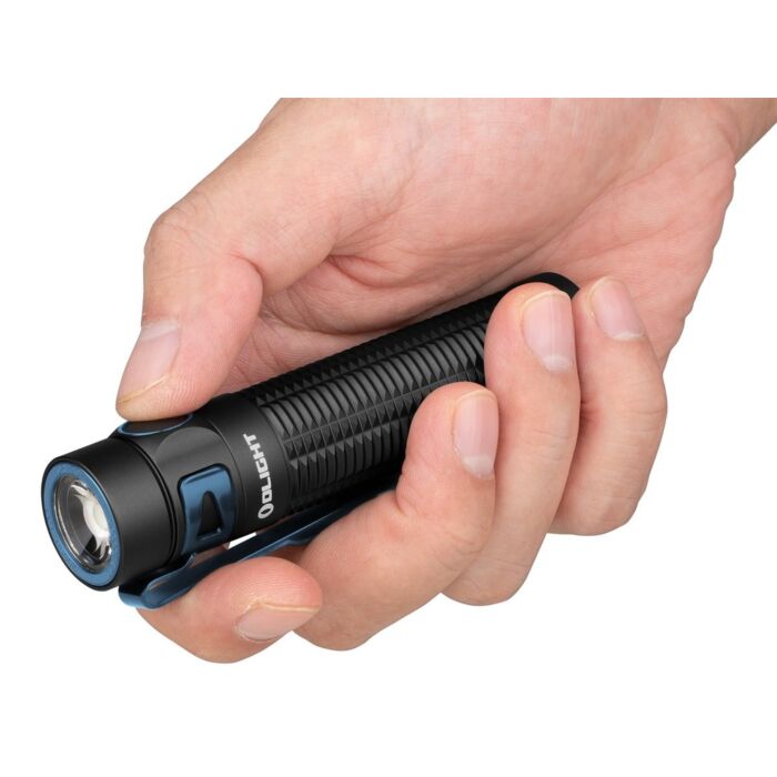 De Baton 3 Pro is een compacte, robuuste en oplaadbare EDC zaklamp met een zijschakelaar die tot wel 175 meter ver kan schijnen. De combinatie van zijn krachtige LED en de TIR lens geeft een strakke lichtbundel met minimaal strooilicht. De lamp beschikt over een hoogwaardige geanodiseerde aluminium constructie, deze oogt niet alleen aantrekkelijk maar is ook nog eens erg robuust. Verder zorgt zijn getextureerde behuizing voor extra grip in alle weersomstandigheden, zijn geanodiseerde slagring beschermd je lens. Aan de achterzijde van de lamp bevind zich een magnetisch ophang- en oplaadpunt. Het opladen is moeiteloos met Olight ’s universele magnetische oplaadkabel, deze bevestigt zichzelf en geeft aan wanneer de lamp vol is. De Baton 3 Pro wordt geleverd met een zelfklevende ophangbeugel, hiermee kun je op elk gewenst oppervlakte een ophangpunt creëren. Verder geeft een driekleurige LED indicator (groen/oranje/rood) in de schakelaar aan hoeveel energie de accu nog heeft in de desbetreffende lichtstand.