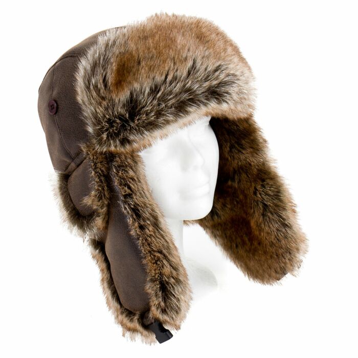 Mooie Pilot Bontmuts, russische chapka, sky leer icm polyester bont, polyester lining, dus geen dierlijk bont.