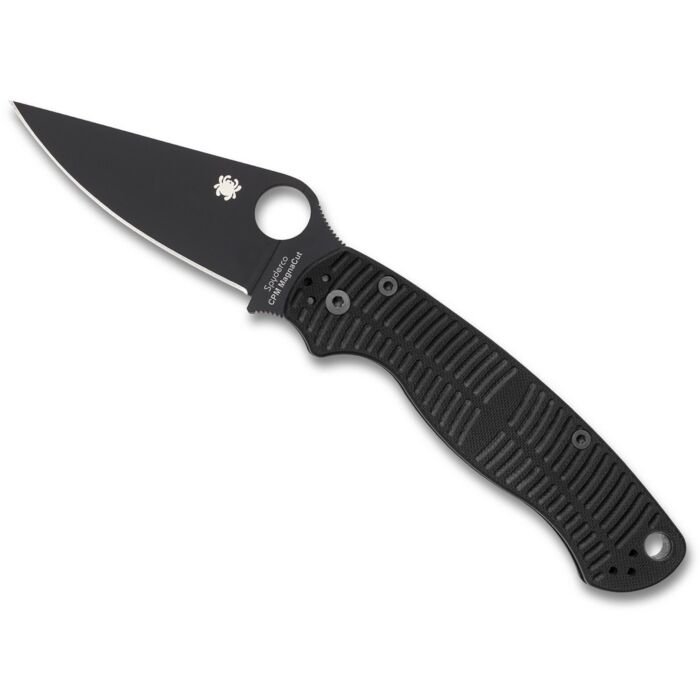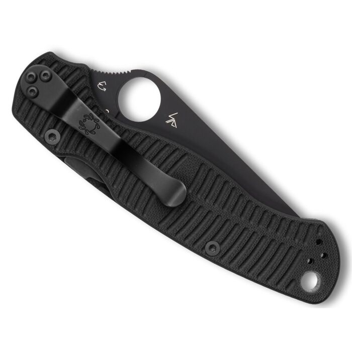 De Spyderco Zakmes Paramilitary 2 Salt Black een stijlvolle toevoeging aan de salt series, gemaakt om te presteren op, rond en in het water. Zijn lemmet is gemaakt van CPM MagnaCut. Deze high-end staalsoort heeft een taaiheid en scherptebehoud die bijna ongeëvenaard is, daarbij is de corrosieweestand ook nog uitmuntend. Verder is het lemmet afgewerkt in met een DLC (Diamond-Like Carbon) coating. Deze coating is er niet alleen voor de uitstraling maar DLC heeft ook een aantal positieve effecten op het lemmet, namelijk vermindering van wrijving en een verhoging van de slijtvastheid. Hierdoor blijft de Paramilitary 2 langer beschermd. Ook is het lemmet uitgevoerd met het al om bekende Spyderco gat voor een één-handige opening. De Paramilitary 2 Salt beschikt over een Compression Lock ™ mechanisme. Hoewel vaak verward als "LinerLock op de achterkant van het handvat is de Compression Lock eigenlijk totaal verschillend. Het werkt tegenovergesteld van een LinerLock. Dit gepatenteerde mechanisme is ook aanzienlijk sterker dan de meeste LinerLocks en de locatie van deze lock maakt dat het mes veilig te sluiten is met één hand zonder uw vingers in de weg van het snijvlak te leggen. Het heft is gemaakt van getextureerd G10, dit is een composiet materiaal met uitstekende slijtvastheid, een stevige grip (zelfs in natte omstandigheden) en een subtiele maar luxe uitstraling. De Paramilitary heeft ingefreesde roestvrijstalen liners en een vier-positie pocket clip.Kenmerken: