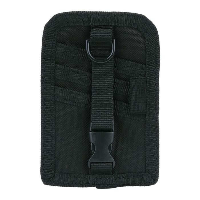 De andere zijde heeft 3 sleuven om creditcards/ID/visitekaartjes etc. in op te bergen en wordt beveiligd door een riempje met snelsluiting. De achterkant heeft een klittenband paneel om te personaliseren met patches, etc.