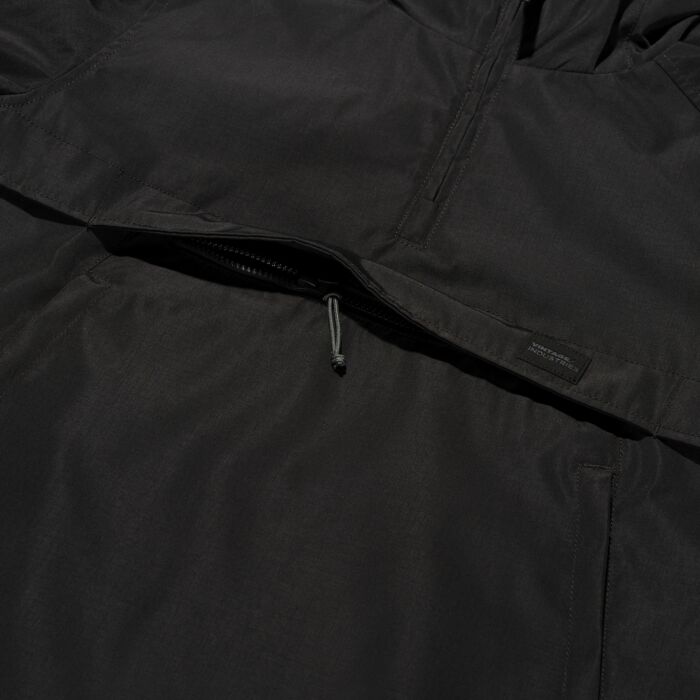 De Vintage Industries Oscar Anorak Black is een waterafstotend en ademend jack die je over het hoofd moet aantrekken.